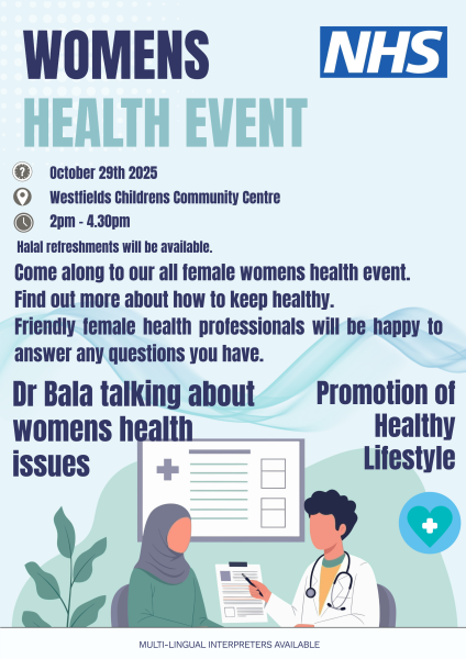 Join us on Tuesday 29th October, 2pm–4:30pm at Westfields Children’s Community Centre for an empowering afternoon focused on women’s health and wellbeing.